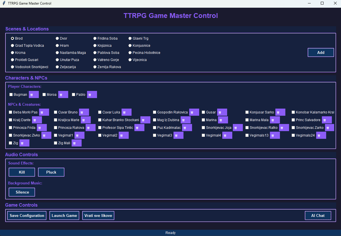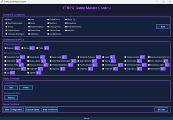 The main interface of the TTRPG Game Master Assistant allows the Game Master to easily manage all visual and audio elements during a session.